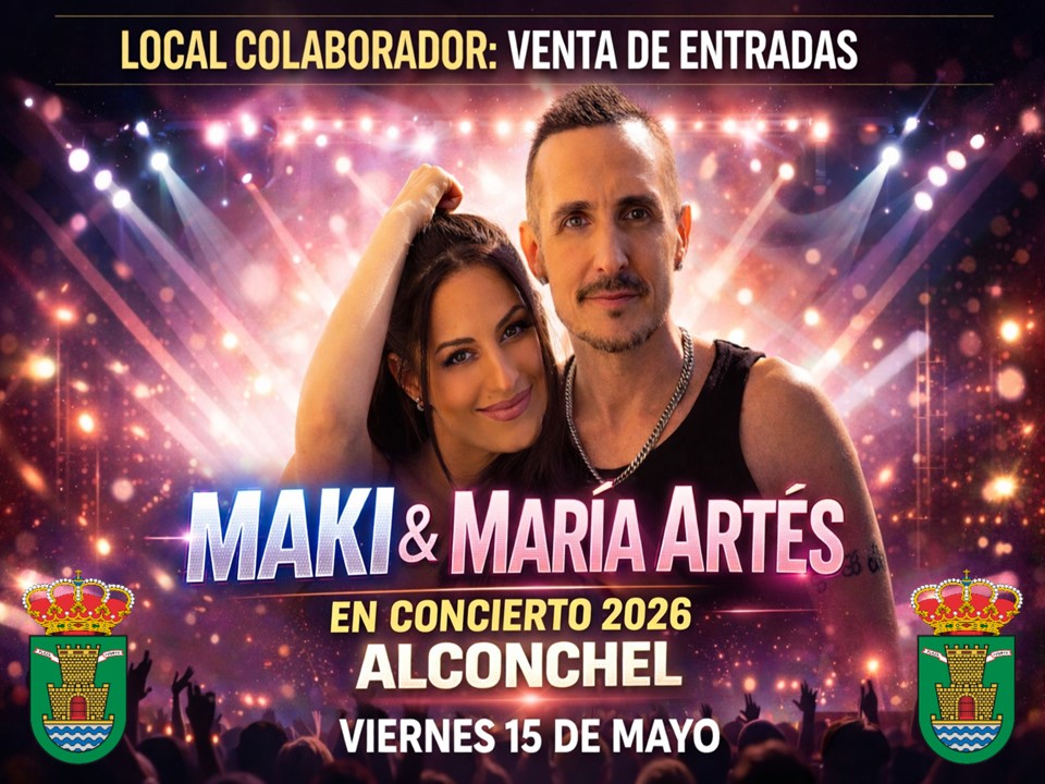 LOCALES COLABORADORES Y PUNTOS FÍSICOS DE VENTA EN ALCONCHEL PARA EL CONCIERTO DE MAKI & MARÍA ARTÉS 2026
