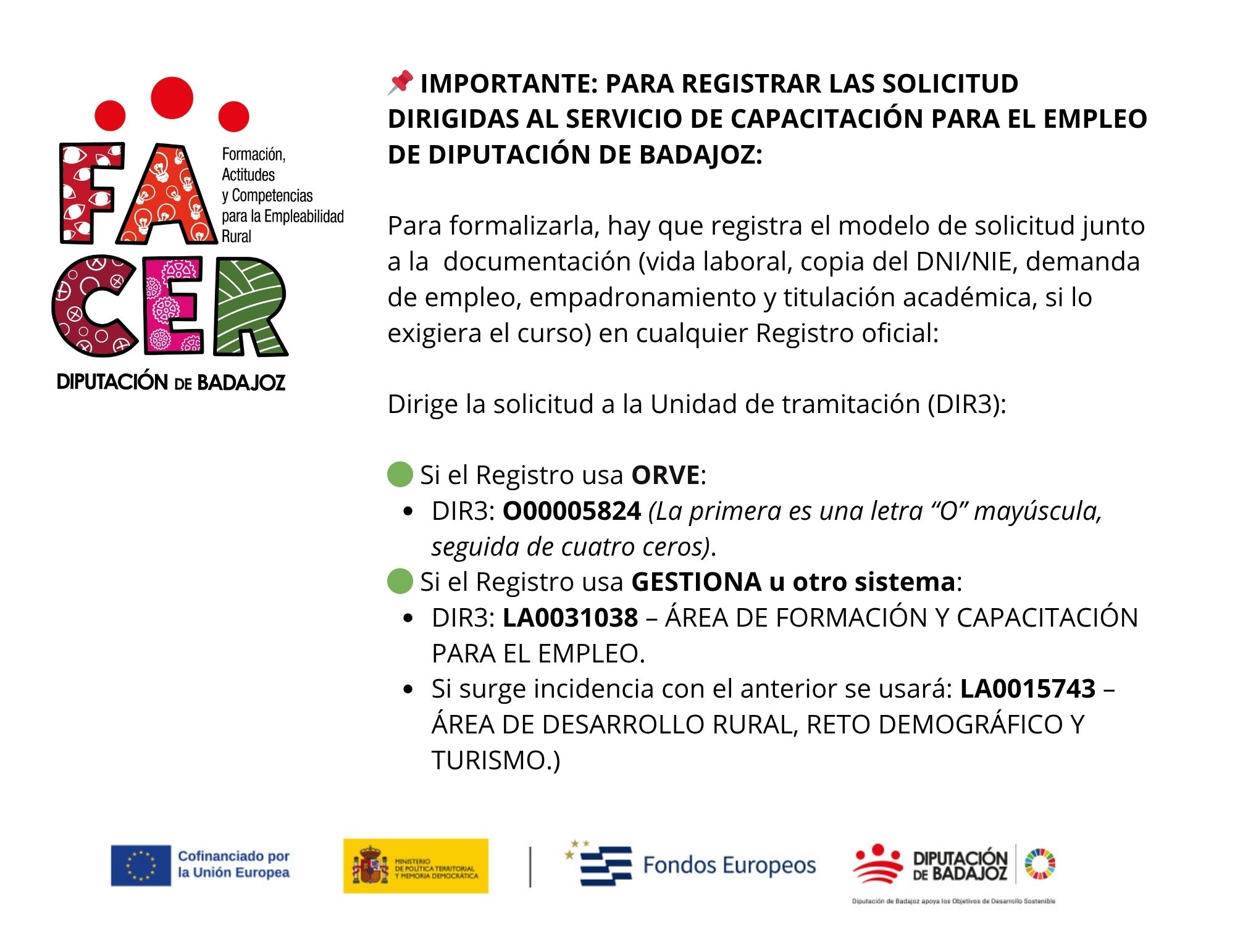 Desde el Proyecto FACER de la Diputación de Badajoz se difunde el curso conducente al Certificado Profesional “Atención Sociosanitaria a Personas Dependientes en Instituciones Sociales”, dirigido al territorio del Centro Integral de Desarrollo (CID) Comarca de Olivenza y localidades cercanas.