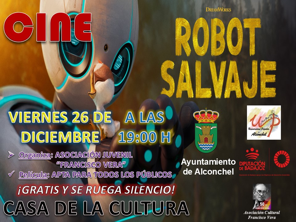 - Hoy viernes 26 diciembre, ROBOT SALVAJE, a las 19:00 horas en la gran pantalla del CINE de la CASA DE LA CULTURA.