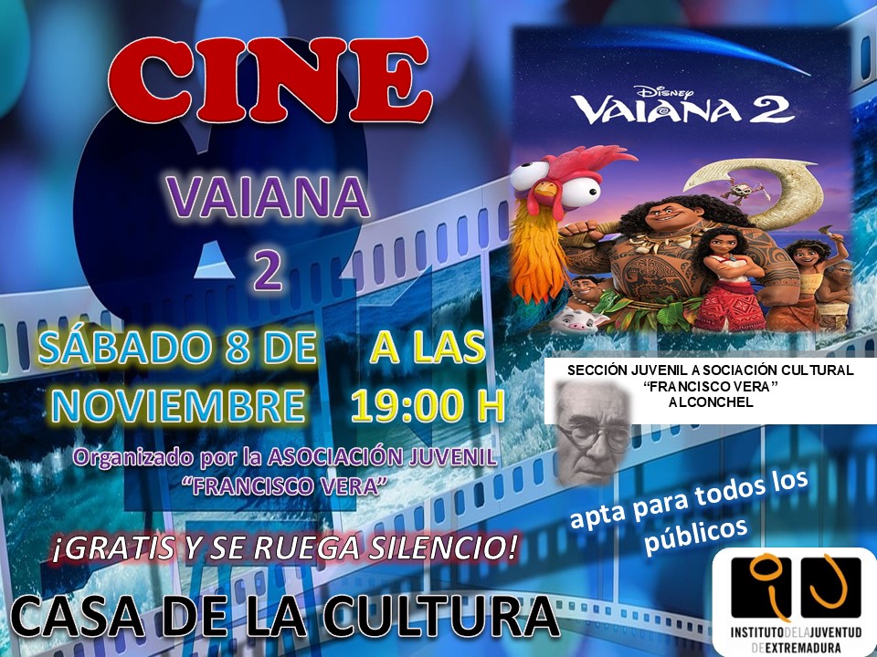Mañana sábado 8 de noviembre, VAIANA 2, a las 19:00 horas en la gran pantalla del CINE de la CASA DE LA CULTURA.