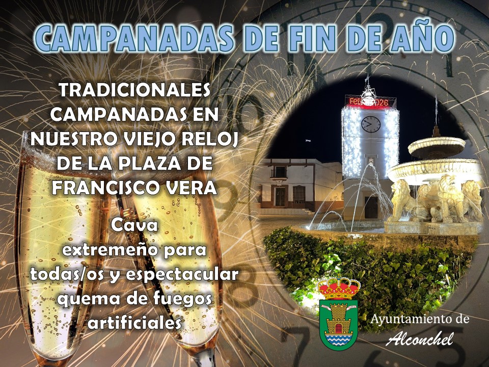 Mañana miércoles 31 de diciembre como marca la tradición, nos reuniremos a partir de las 23:30 horas en el RELOJ DE LA PLAZA DE FRANCISCO VERA para despedir el año y recibir el nuevo con las campanadas.