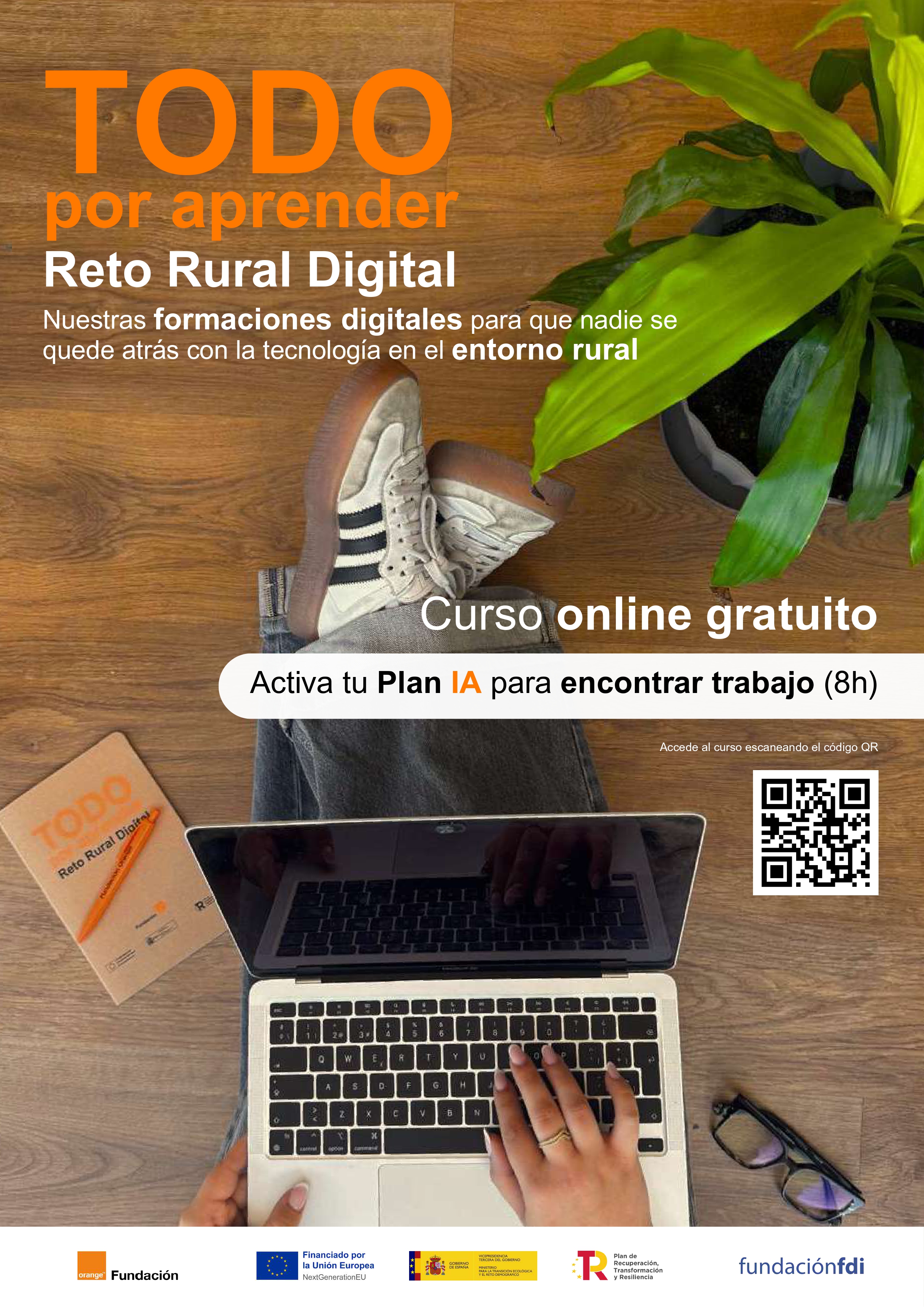 Desde Fundación FDI y Fundación Orange, en el marco del proyecto Reto Rural Digital, han lanzado “Activa tu Plan IA para encontrar trabajo”, un curso gratuito y online dirigido a jóvenes y personas desempleadas que viven en municipios de menos de 5.000 habitantes.