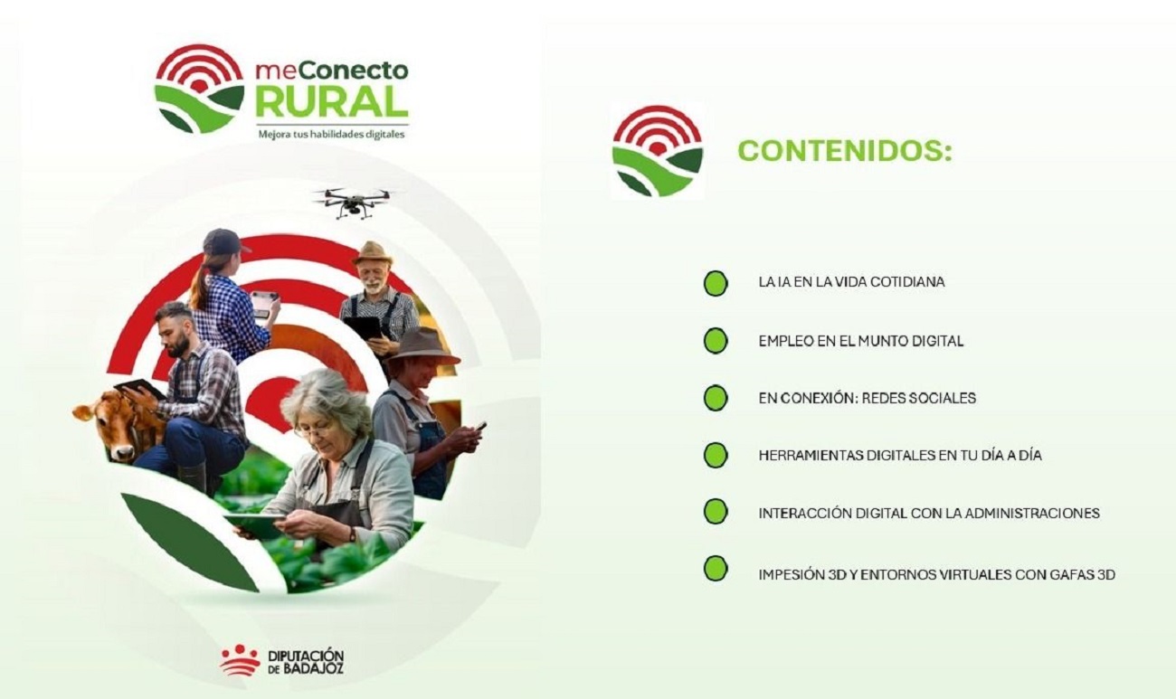 “Me conecto rural” es un proyecto impulsado por la Diputación de Badajoz, y con la colaboración de InfoGuadiana, que pretende acercar la tecnología a las personas que viven en municipios de menos de 5.000 habitantes.