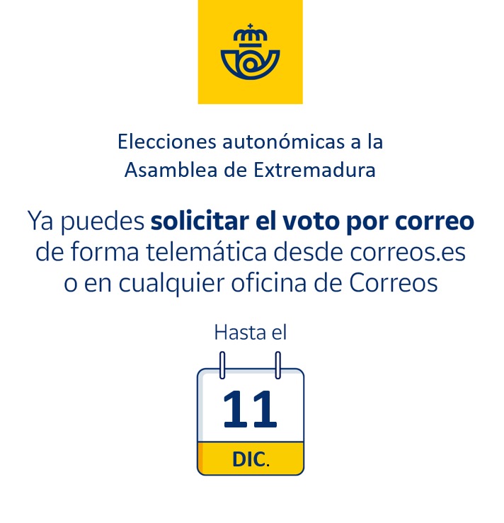 Ya puedes solicitar el voto por correo para las elecciones a la Asamblea de Extremadura que se celebrarán el próximo 21 de diciembre siguiendo los siguientes pasos: