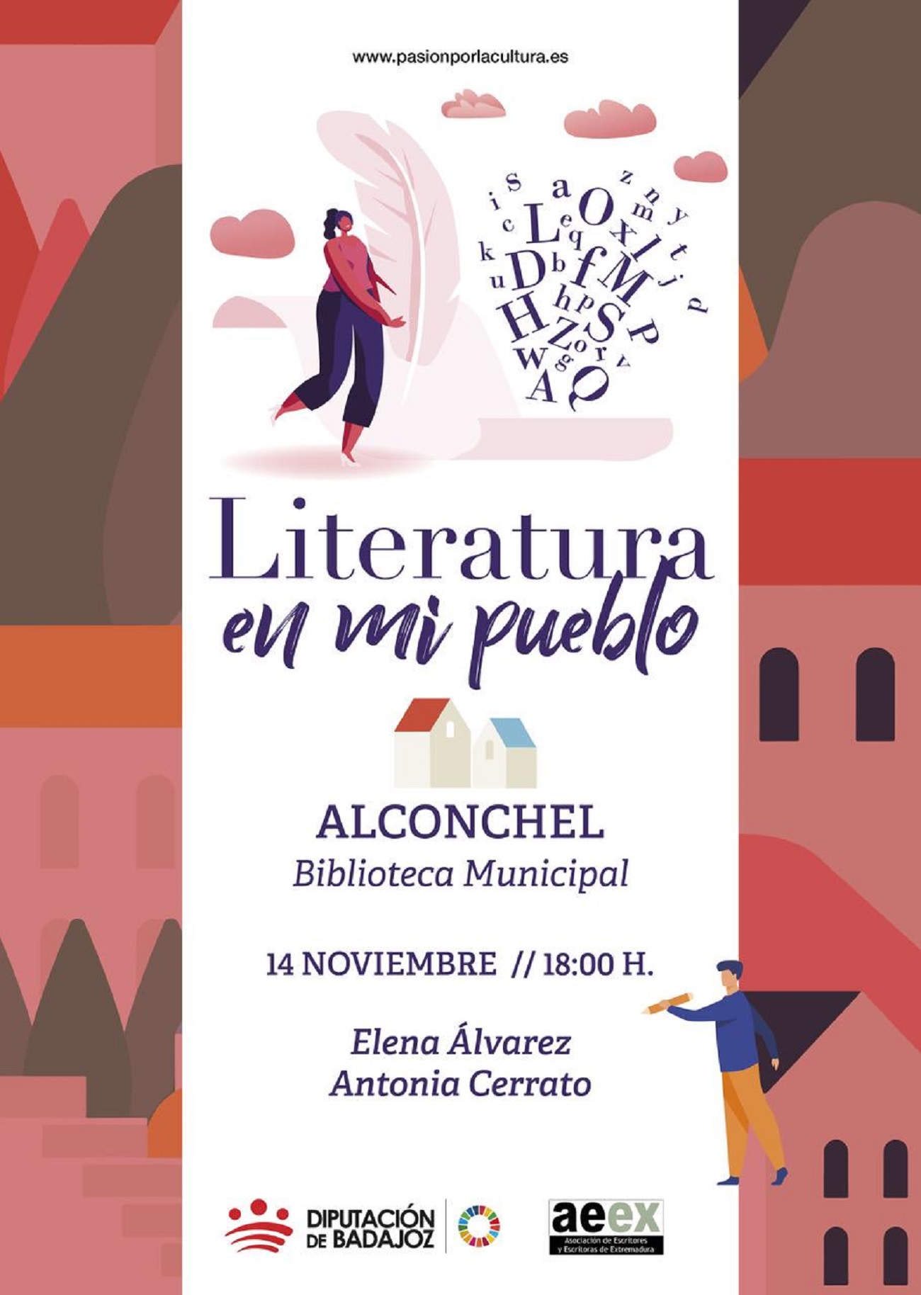Nuestra BIBLIOTECA MUNICIPAL acoge hoy viernes 14 de noviembre, a las 18:00h, un encuentro literario llamado “Literatura en mi pueblo” otorgado por la Diputación de Badajoz, donde podremos disfrutar con las obras de las autoras extremeñas Elena Álvarez y Antonia Cerrato.