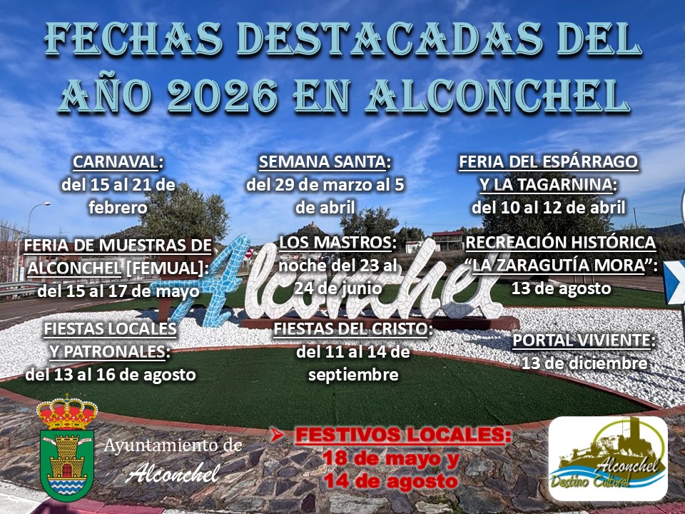FECHAS DESTACADAS DEL AÑO 2026 EN ALCONCHEL
