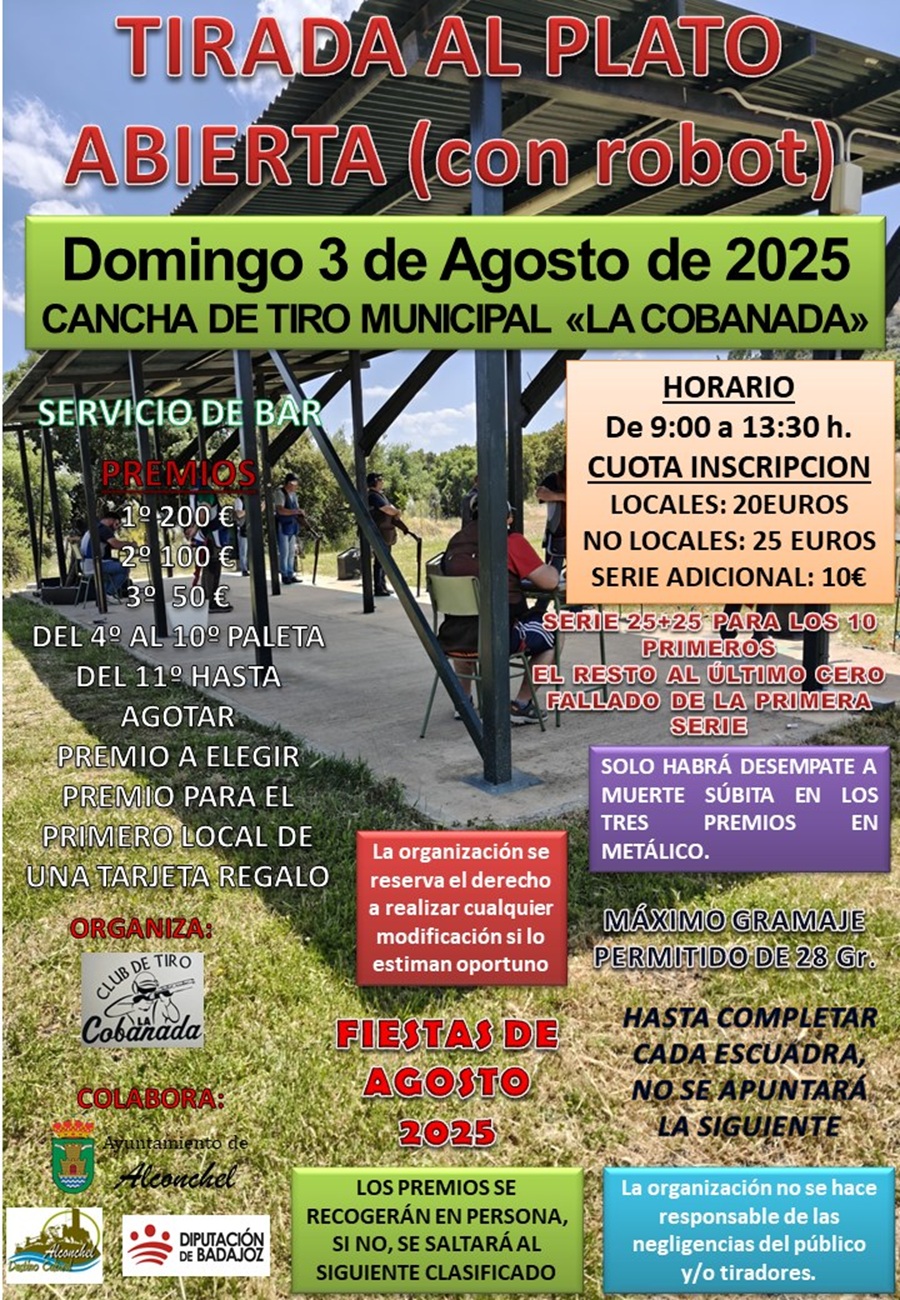 NUEVOS CAMPEONATOS PREVIOS A LAS FIESTAS DE AGOSTO 2025: CONCURSO DE PESCA ABIERTO LOCAL POR PAREJAS Y TIRADA AL PLATO ABIERTA (con robot)