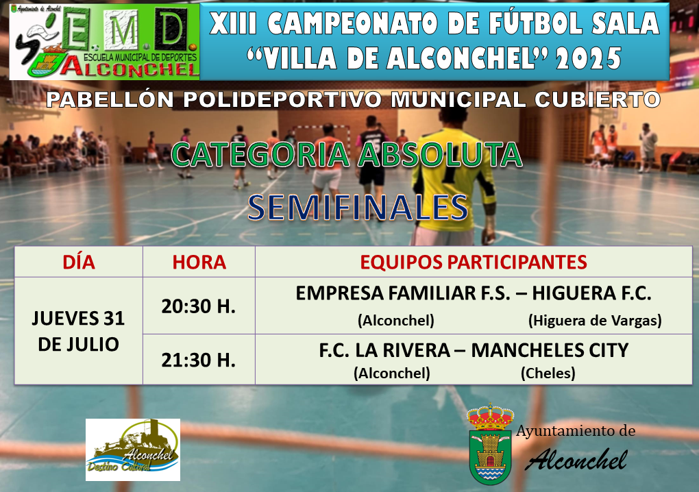 Mañana jueves 31 de julio a partir de las 20:30 h. se disputan las semifinales del CAMPEONATO ABSOLUTO DE FÚTBOL SALA.